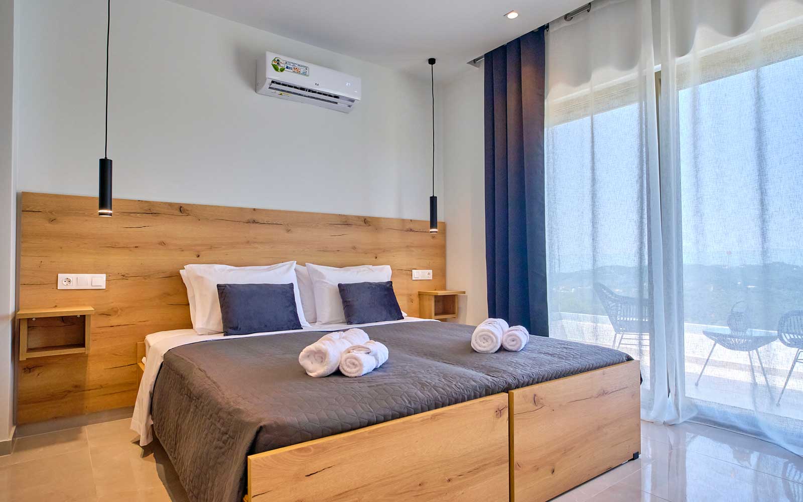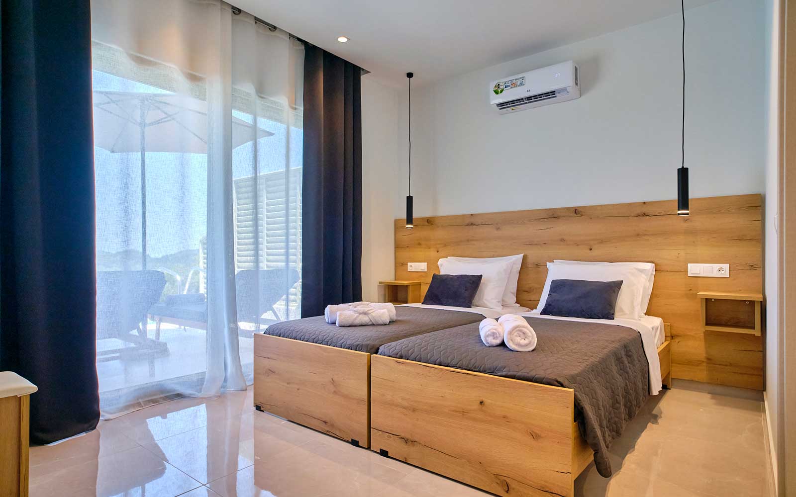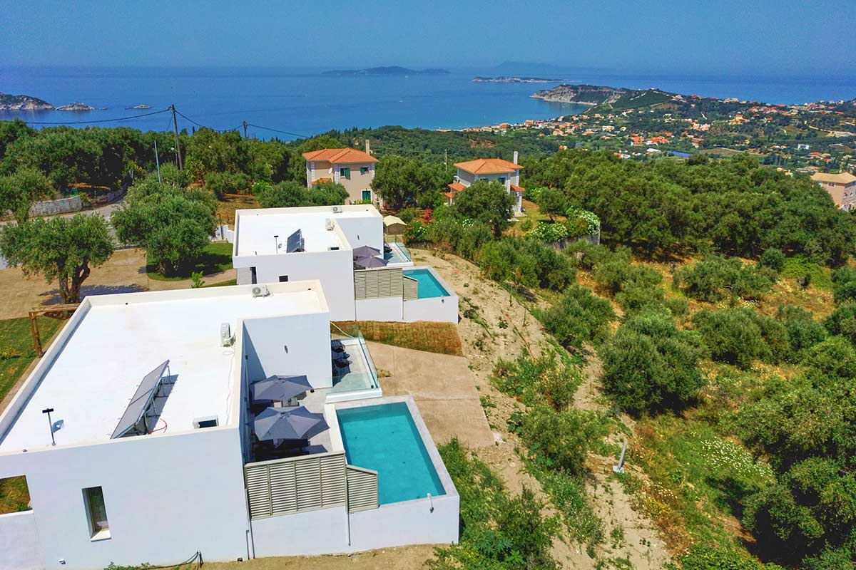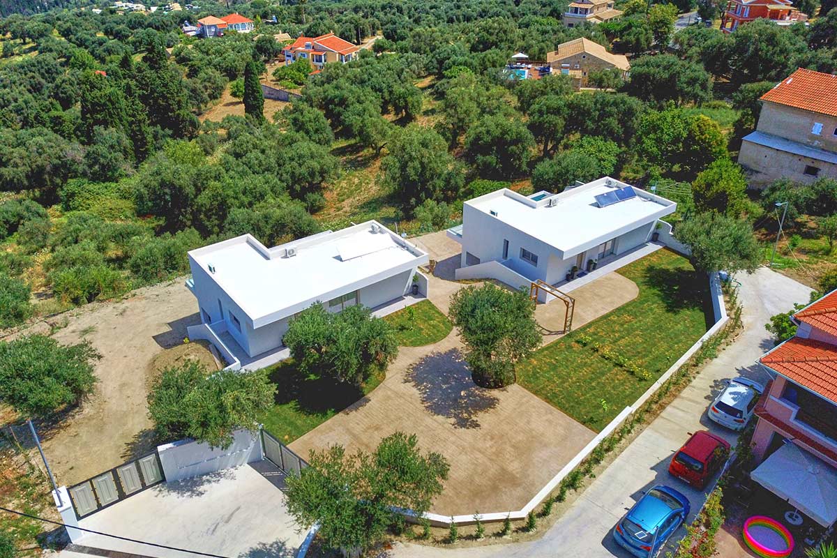 Our twin Polgar Villas comprises exceptional luxury accommodation with private pools and stunning views to Arillas and Diapontia Islands. Each Villa can sleep up to 4 guests in a living space of 95sq.m. Polgar Villas are situated in the North West Corfu at the village of Kavvadades. The location is suitable for couples and families who wish to spend relaxing and peaceful holidays with easy access (a few minutes driving) to sandy organized beaches and spots with unrepeatable ocean views and sunsets. Polgar villas offer privacy in a fenced property with an outdoor spacious communal area with lawn and paving. Each villa has its own private pool and can be rented separately.
